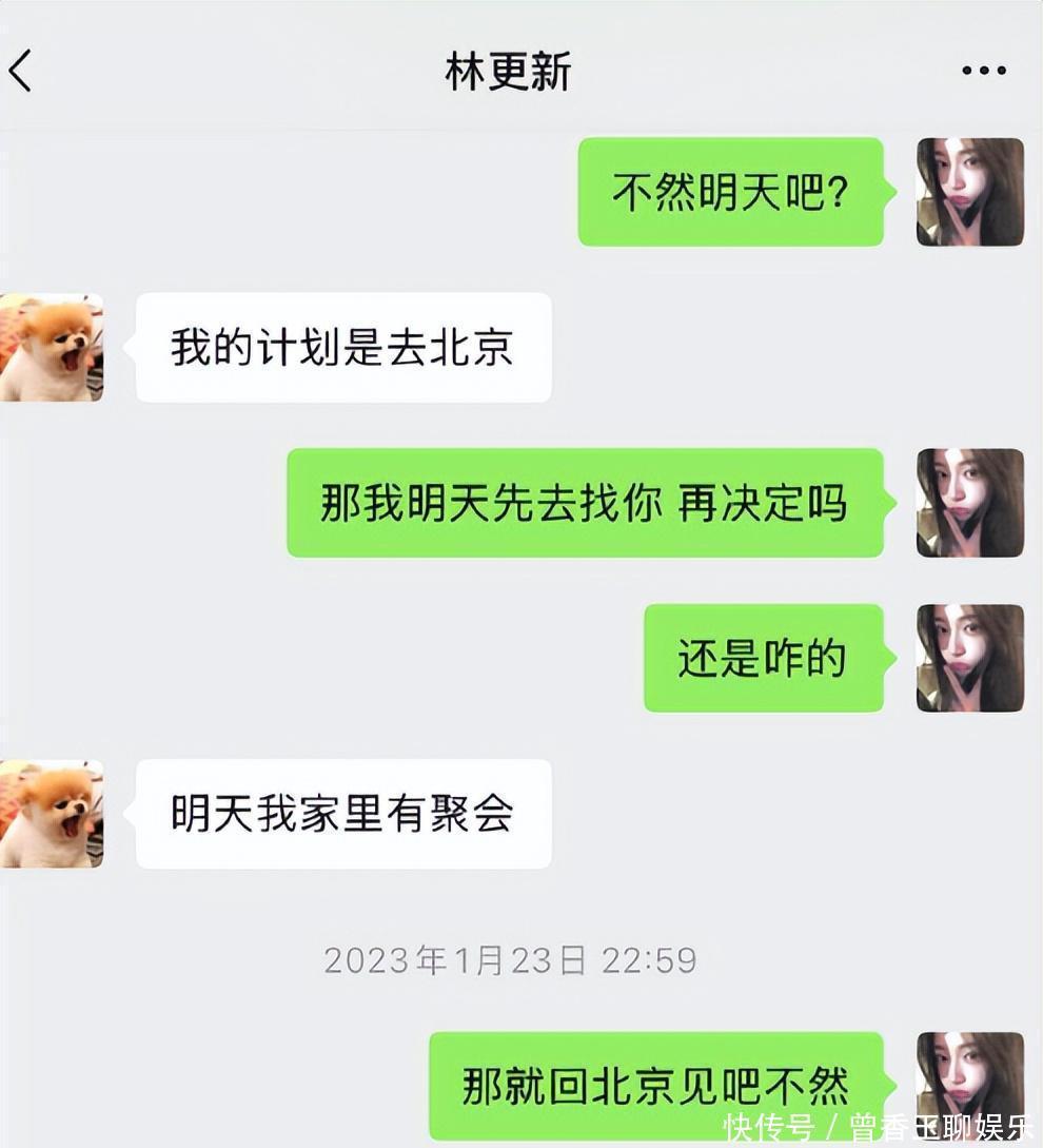 然而真正引发网友热议的,是她晒出的与林更新的聊天记录。记录中反复出现“北京见”这三个字,顿时引爆全网好奇心。有网友调侃道:“北京到底有谁在啊?”这句看似无心的调侃瞬间成为网络热梗,将这场风波推向高潮。